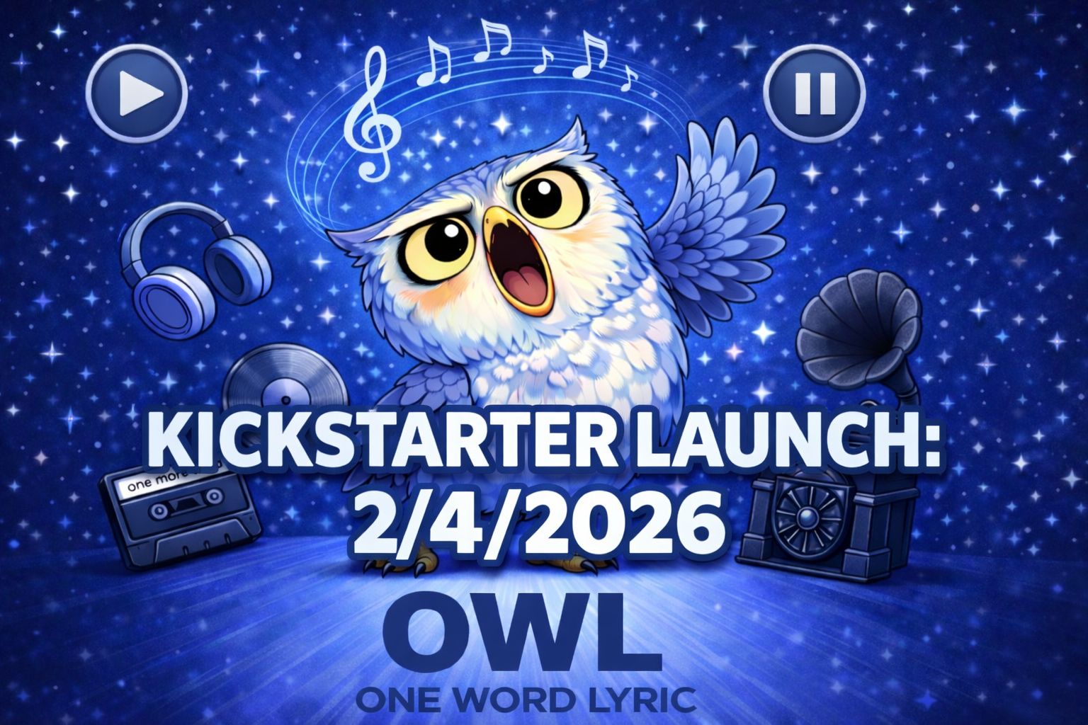 OWL — One Word Lyric card game is launching on Kickstarter in February. All backers of our campaign will receive a special Limited Edition copy, providing we reach our goal by 2/25/2026.